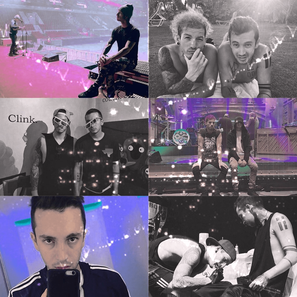 This is a collage I made of my favorite band Twenty One Pilots, consisting of Tyler Joseph (the singer, as well as plays other instruments such as the piano and ukulele) and Josh Dun (the drummer). The process of creating this was quite simple, I gathered a few pictures that I thought were nice that represented their dynamic friendship. Then, I went into an app called ‘Polarr’ which is used for filtering images, and I messed around with the settings a bit on the middle right picture until I came up with something vibrant and low saturation that would mainly emphasize shades of blue, purple, and pink. Then once I was done, I applied it to the two other pictures I felt would look better with the filter, and then made the other three picture to black and white. After, I arranged them into an order I felt was aesthetically pleasing, and finished it off by overlaying a stardust image to add some bling to it as a whole.